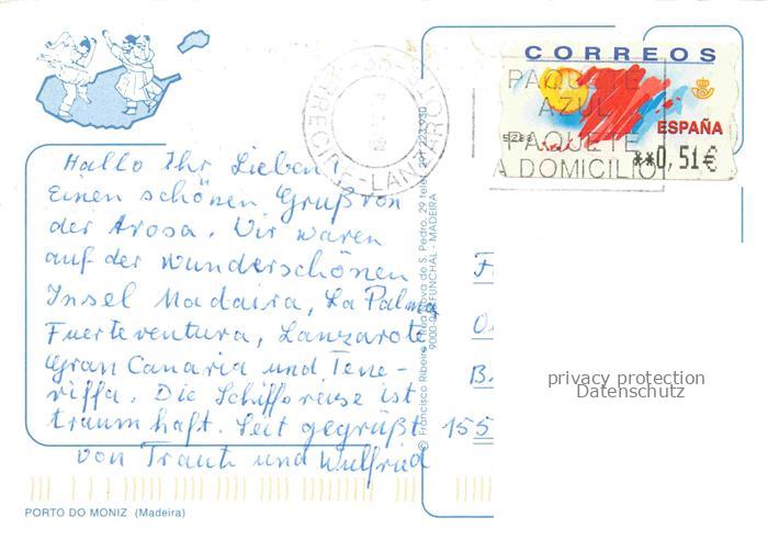 74043096 old postcard Porto do Moniz Madeira Portugal Fliegeraufnahme postalisch gelaufen Erhaltung siehe scans [WerneD78] KatCode: 11420