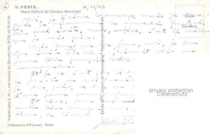 Porto Portugal Novo Edificio da Camara Municipal postalisch nicht gelaufen Erhaltung siehe scans [LiesaD40]