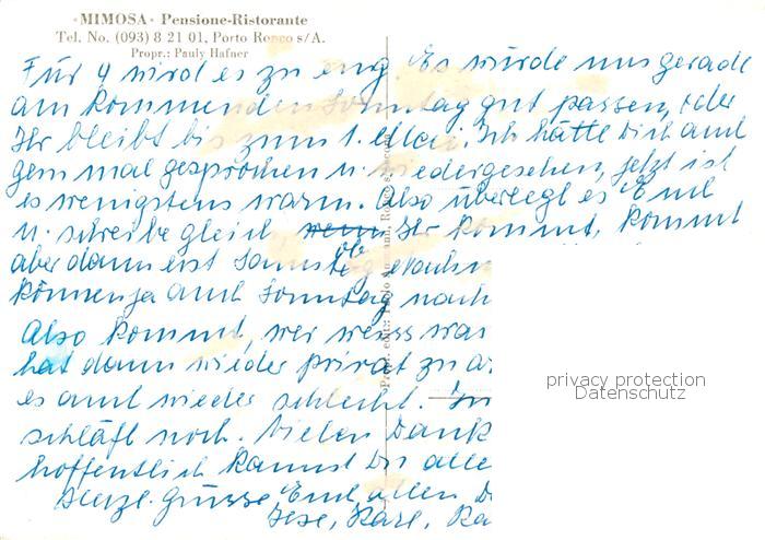13803016 Porto Ronco Pensione Ristorante Mimosa postalisch nicht gelaufen Erhaltung siehe scans [FriedD77] KatCode: 11470210655002
