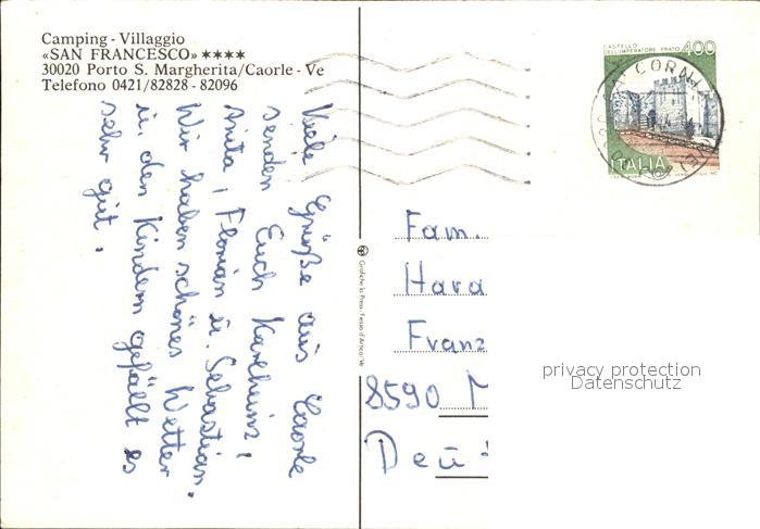 old postcard Porto Santa Margherita Camping Villaggio San Francesco postalisch gelaufen Erhaltung siehe scans