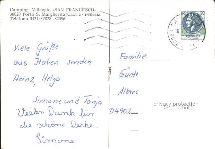 old postcard Porto Santa Margherita Camping Villaggio San Francesco postalisch gelaufen Erhaltung siehe scans