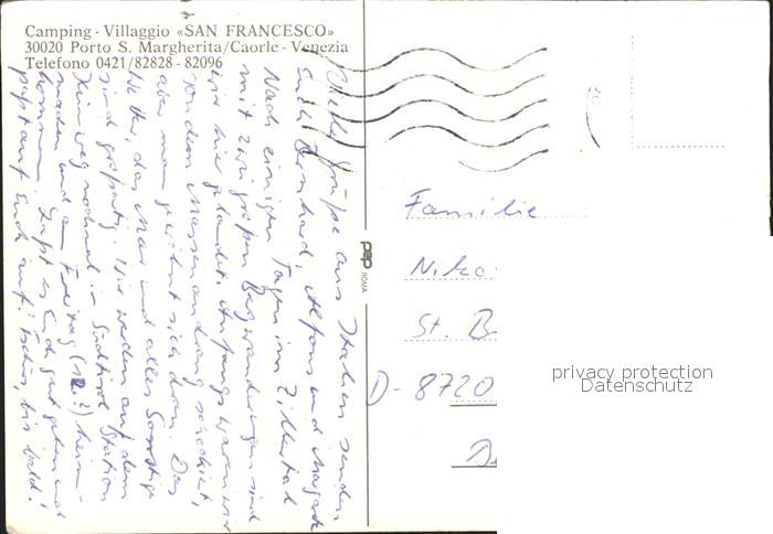 old postcard Porto Santa Margherita Fliegeraufnahme Camping San Francesco postalisch gelaufen Erhaltung siehe scans