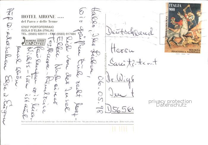 old postcard Portoferraio Toscana Hotel Airone del Parco e delle Terme postalisch gelaufen Erhaltung siehe scans