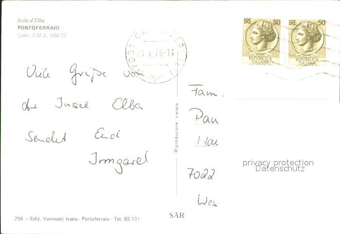 old postcard Portoferraio Toscana Isola d Elba Hafenpartie Fliegeraufnahme postalisch gelaufen Erhaltung siehe scans