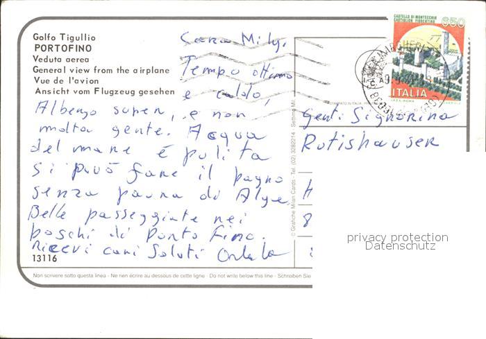 old postcard Portofino Liguria Golfo Tigullio veduta aerea postalisch gelaufen Erhaltung siehe scans