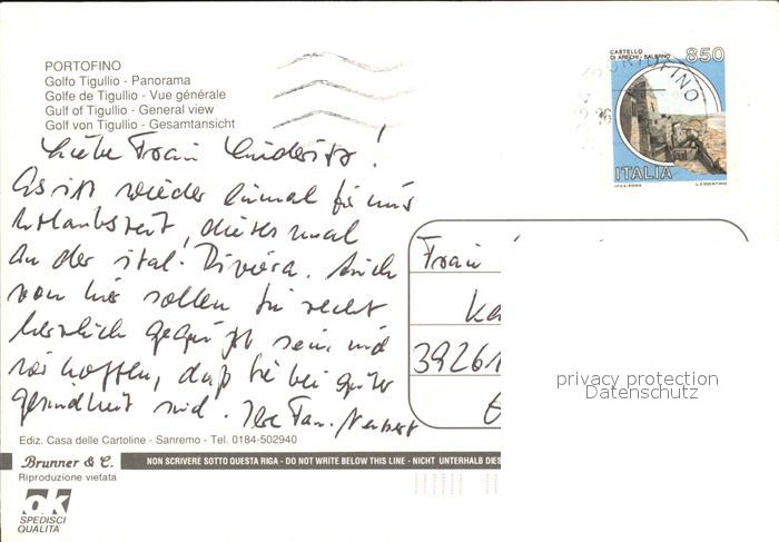 old postcard Portofino Liguria Hafen postalisch gelaufen Erhaltung siehe scans