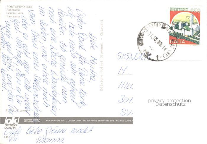 old postcard Portofino Liguria Hafen postalisch gelaufen Erhaltung siehe scans
