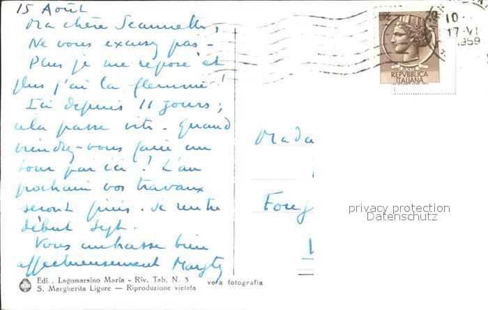 old postcard Portofino Liguria Hafen postalisch gelaufen Erhaltung siehe scans