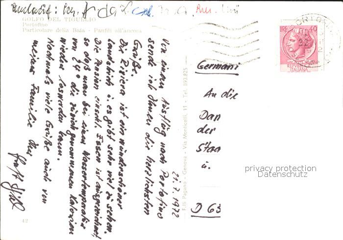 old postcard Portofino Liguria Particolare della Baia Panfili all ancora postalisch gelaufen Erhaltung siehe scans