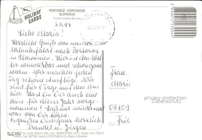 old postcard Portorose Istrien Hafen Segelboot Strand Fliegeraufnahme postalisch gelaufen Erhaltung siehe scans