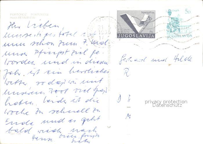 old postcard Portorose Istrien Hotel Bernardin Fliegeraufnahme postalisch gelaufen Erhaltung siehe scans