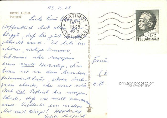 old postcard Portorose Istrien Hotel Lucija postalisch gelaufen Erhaltung siehe scans