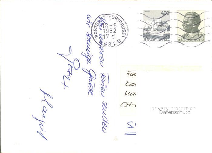 old postcard Portoroz Badestrand Piran Strunjan Koper Ankaran postalisch gelaufen Erhaltung siehe scans