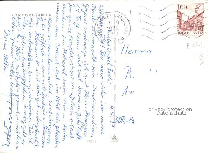 old postcard Portoroz Casino postalisch gelaufen Erhaltung siehe scans