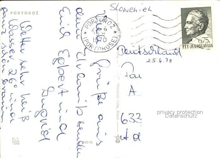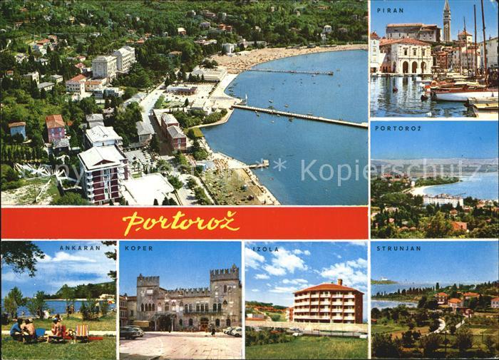 old postcard Portoroz Fliegeraufnahme Piran Strunjan Izola Koper Ankaran postalisch gelaufen Erhaltung siehe scans