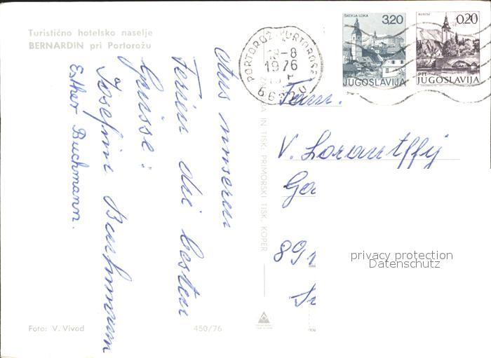 old postcard Portoroz Hotel Bernardin postalisch gelaufen Erhaltung siehe scans