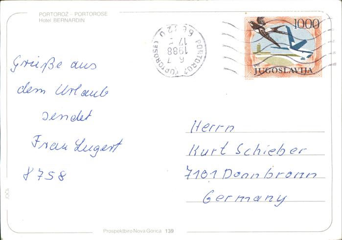old postcard Portoroz Hotel Bernardin Fliegeraufnahme postalisch gelaufen Erhaltung siehe scans