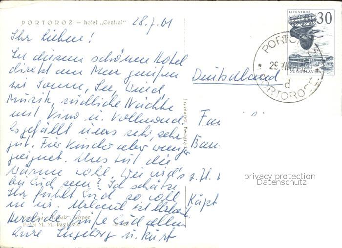 alte Postkarte Portoroz Hotel Central postalisch gelaufen Erhaltung siehe scans