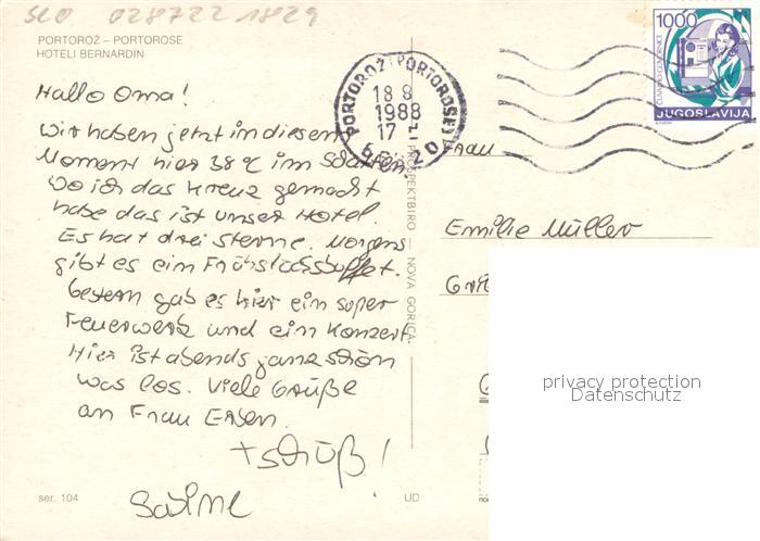old postcard Portoroz Hoteli Bernardin Fliegeraufnahme postalisch gelaufen Erhaltung siehe scans [WerneD78]