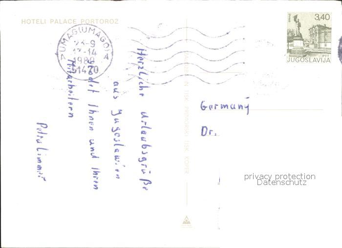 old postcard Portoroz Hoteli Palace postalisch gelaufen Erhaltung siehe scans