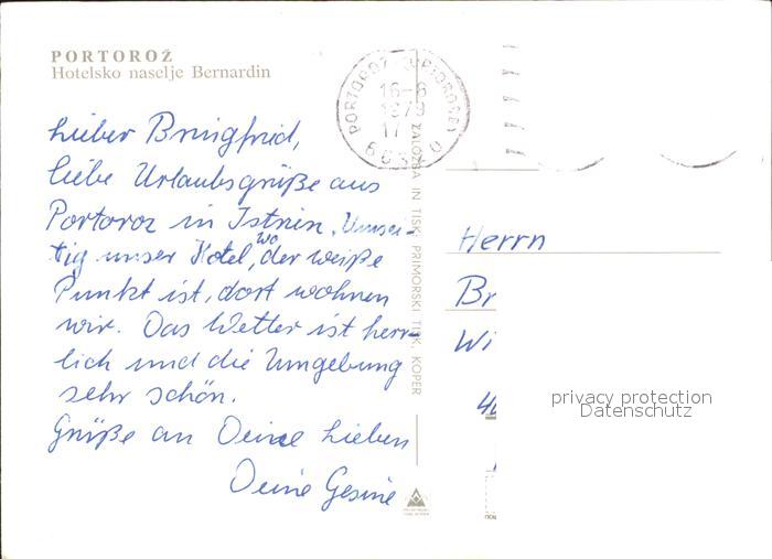 old postcard Portoroz Hotelsko naselje Bernardin postalisch gelaufen Erhaltung siehe scans