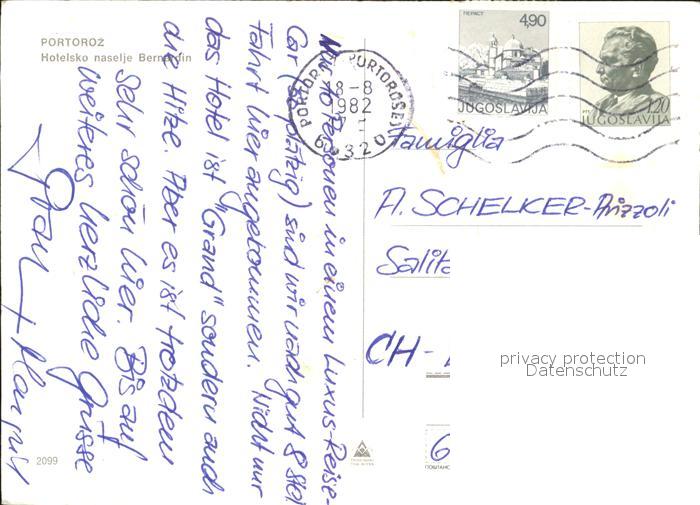 old postcard Portoroz Hotelsko naselje Bernardin postalisch gelaufen Erhaltung siehe scans