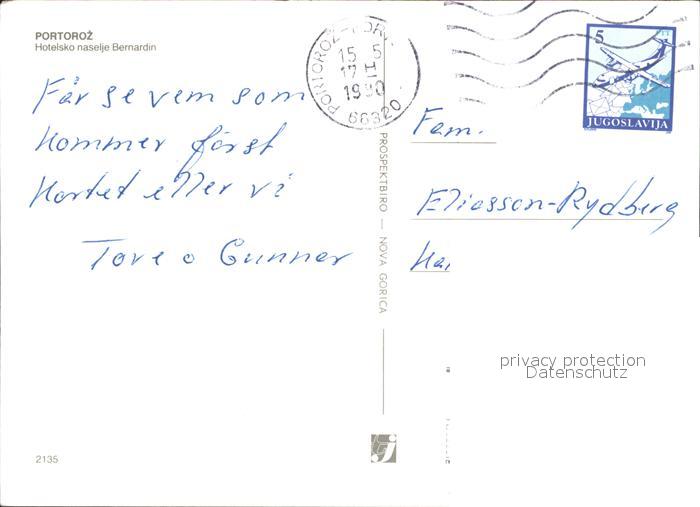 old postcard Portoroz Hotelsko naselje Bernardin postalisch gelaufen Erhaltung siehe scans