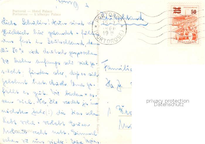 old postcard Portoroz Portorose Piran Istrien Slovenia Hotel Palace postalisch gelaufen Erhaltung siehe scans [WerneD78]