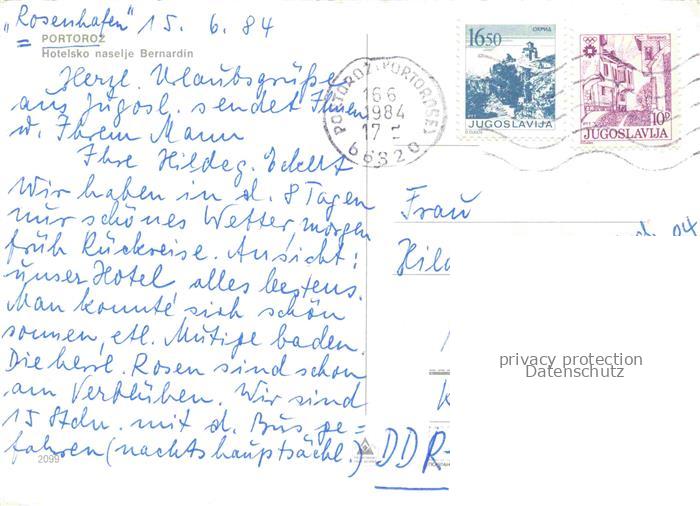 74087805 old postcard Portoroz Portorose Piran Istrien Slovenia Hotelsko naselje Bernardin postalisch gelaufen Erhaltung siehe scans [WerneD78] KatCode: 11500