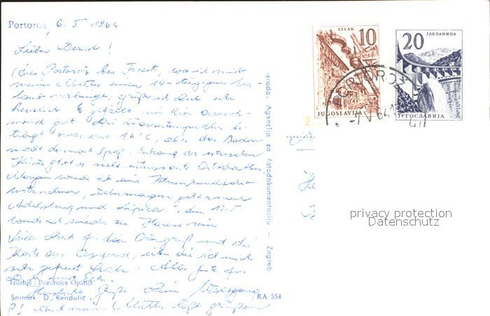 alte Postkarte Portoroz Strand Hafen Fliegeraufnahme postalisch gelaufen Erhaltung siehe scans
