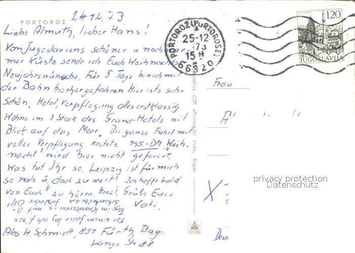 old postcard Portoroz Teilansicht postalisch gelaufen Erhaltung siehe scans