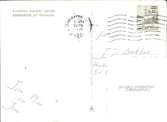 old postcard Portoroz Touristenhotel Bernardin Mototboote postalisch gelaufen Erhaltung siehe scans