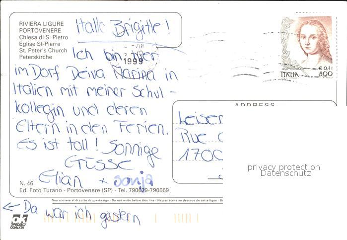 old postcard Portovenere Golfo dei Poeti Chiesa di San Pietro postalisch gelaufen Erhaltung siehe scans