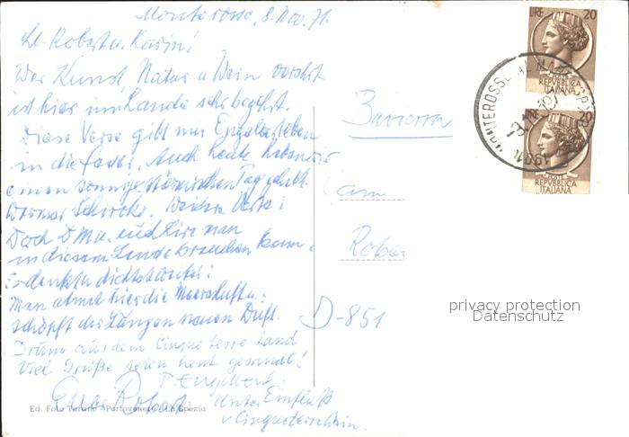 old postcard Portovenere Grotte Kirche Kueste Segelboot Meerestiere postalisch gelaufen Erhaltung siehe scans