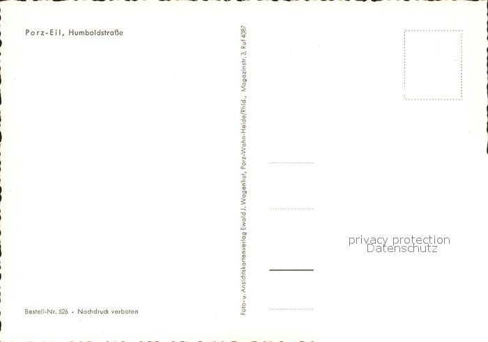72130926 Porz Eil Humboldstrasse postalisch nicht gelaufen KatCode: 11110005315000