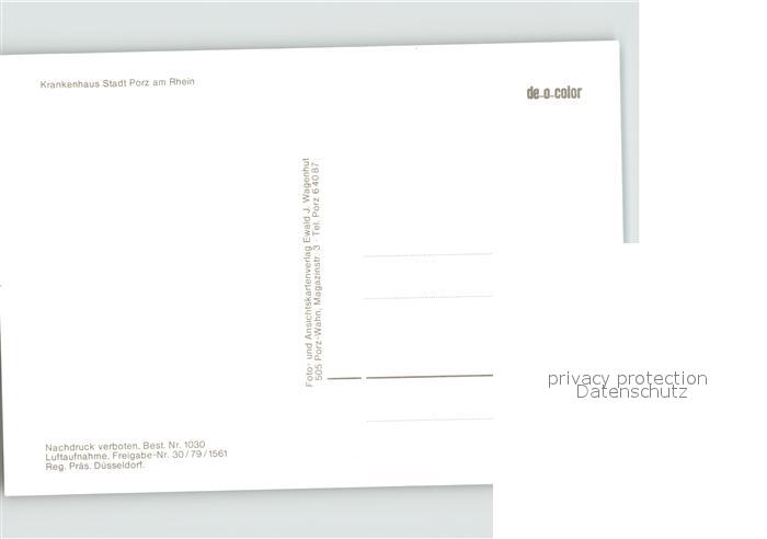71850508 Porz Koeln am Rhein Krankenhaus Fliegeraufnahme postalisch nicht gelaufen Erhaltung siehe scans KatCode: 11110005315000