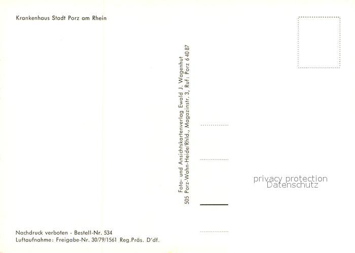 73185240 Porz Koeln Fliegeraufnahme Krankenhaus postalisch nicht gelaufen Erhaltung siehe scans [LiesaD40] KatCode: 11110005315000