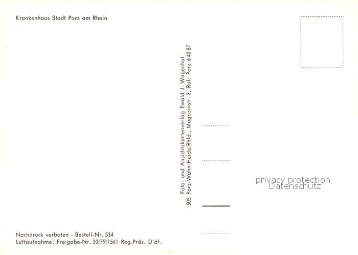 73110338 Porz Koeln Fliegeraufnahme Krankenhaus postalisch nicht gelaufen Erhaltung siehe scans [NatalD47] KatCode: 11110005315000