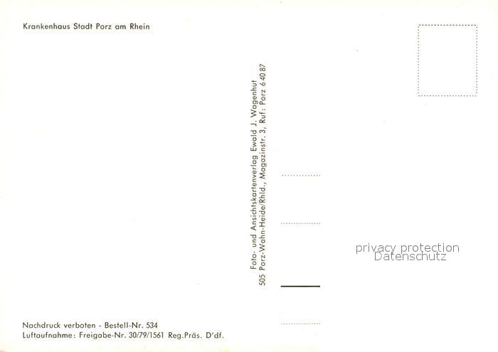 73106431 Porz Koeln Fliegeraufnahme Krankenhaus postalisch nicht gelaufen Erhaltung siehe scans [KathaD81] KatCode: 11110005315000