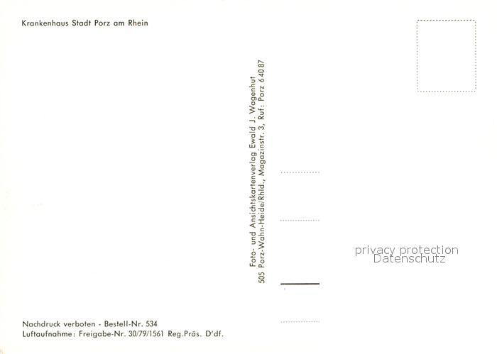 72951713 Porz Koeln Fliegeraufnahme Krankenhaus postalisch nicht gelaufen Erhaltung siehe scans [NatalD47] KatCode: 11110005315000