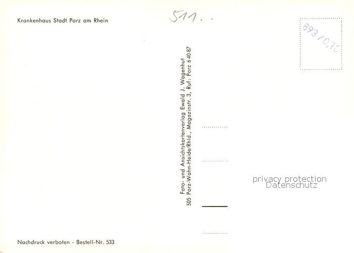 73335074 Porz Koeln Fliegeraufnahme Krankenhaus postalisch nicht gelaufen Erhaltung siehe scans [LiesaD40] KatCode: 11110005315000