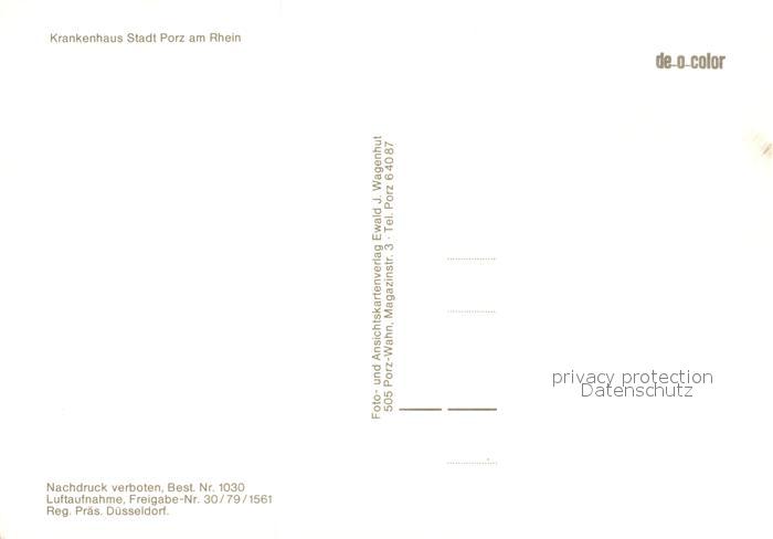 73160640 Porz Koeln Krankenhaus am Rhein Fliegeraufnahme postalisch nicht gelaufen Erhaltung siehe scans [FriedD77] KatCode: 11110005315000