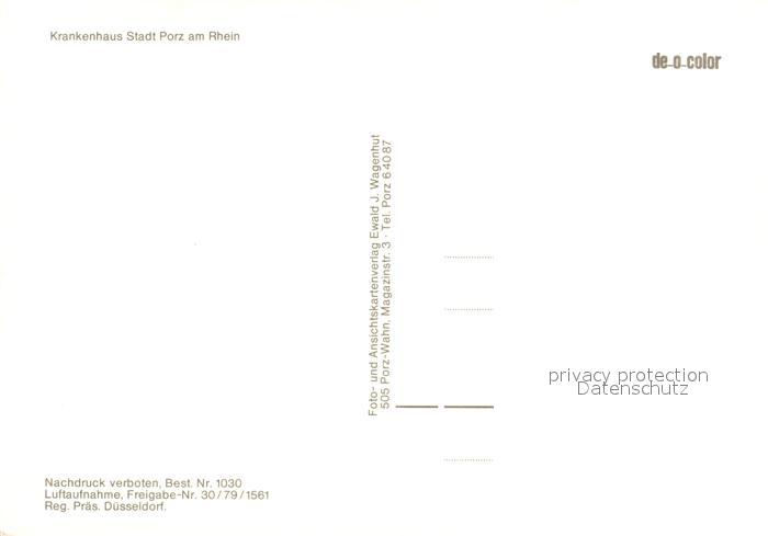 73165740 Porz Koeln Krankenhaus am Rhein Fliegeraufnahme postalisch nicht gelaufen Erhaltung siehe scans [WerneD78] KatCode: 11110005315000
