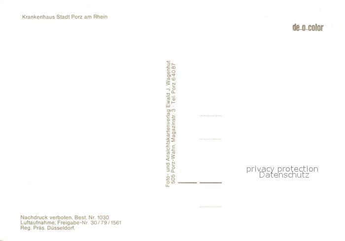 73097939 Porz Koeln Krankenhaus Fliegeraufnahme postalisch nicht gelaufen Erhaltung siehe scans [WerneD78] KatCode: 11110005315000