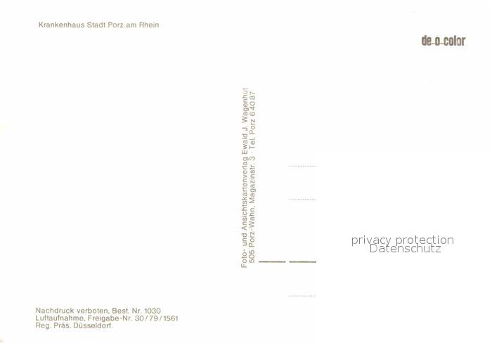 72909135 Porz Koeln Krankenhaus Fliegeraufnahme postalisch nicht gelaufen Erhaltung siehe scans [FriedD77] KatCode: 11110005315000