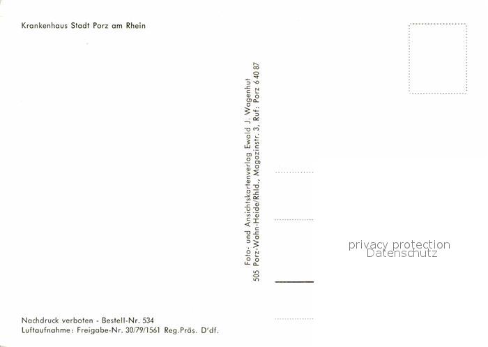 72781930 Porz Koeln Krankenhaus Fliegeraufnahme postalisch nicht gelaufen Erhaltung siehe scans [FriedD77] KatCode: 11110005315000