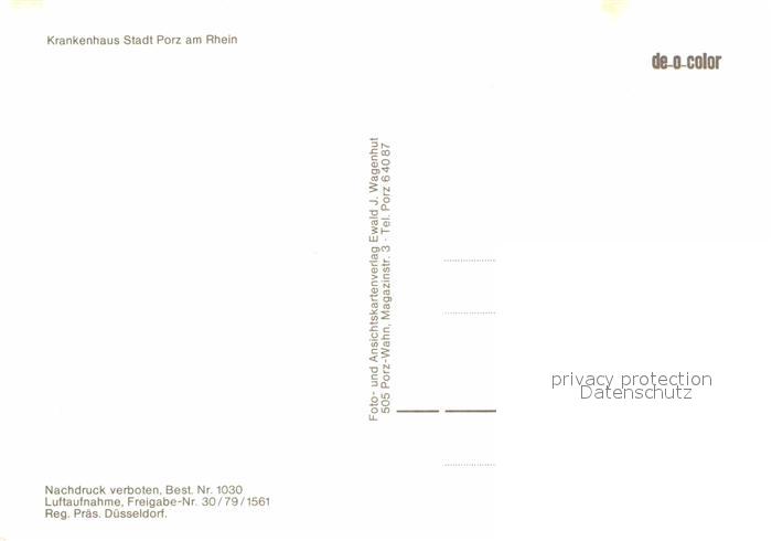 72750392 Porz Koeln Krankenhaus Fliegeraufnahme postalisch nicht gelaufen Erhaltung siehe scans [FriedD77] KatCode: 11110005315000
