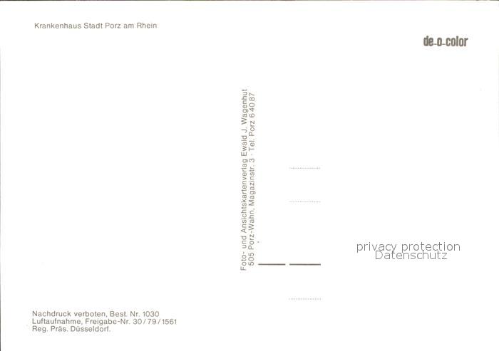 71909701 Porz Koeln Krankenhaus Fliegeraufnahme postalisch nicht gelaufen Erhaltung siehe scans KatCode: 11110005315000