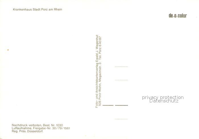 73707790 Porz Koeln Krankenhaus postalisch nicht gelaufen Fliegeraufnahme Erhaltung siehe scans [FriedD77] KatCode: 11110005315000