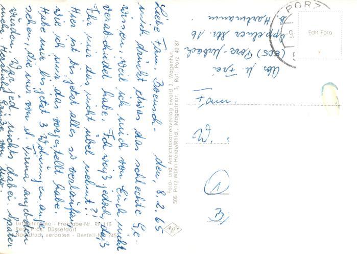 73885803 Porz Koeln Rhein Fliegeraufnahme postalisch gelaufen Erhaltung siehe scans [FriedD77] alte Postkarte Frie Katcode 11110005315000